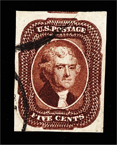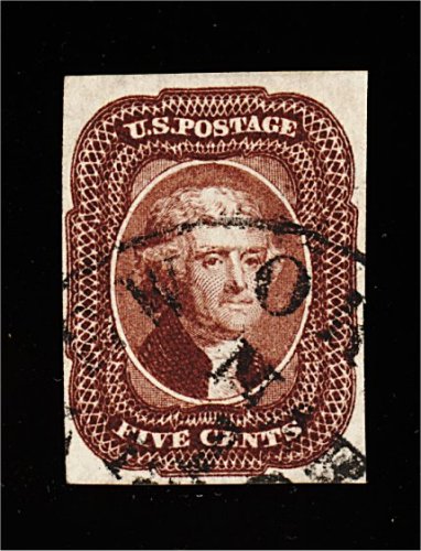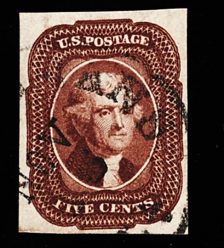 51 O 12 image#12, 5c Red brown, a highly select used example of this classic stamp, featuring several exceptional eye-appealing qualities, including four lavishly large margins, with a portion of the adjoining stamp showing at top, striking color that is unusually intense, plus its impression is incredibly strong and detailed on bright clean paper, unobtrusive circular postmarks at edges, leaving entire central vignette cancel free, extremely fine; especially scarce in this gem quality; 1999 PF certificate. (Image) 1,100.00