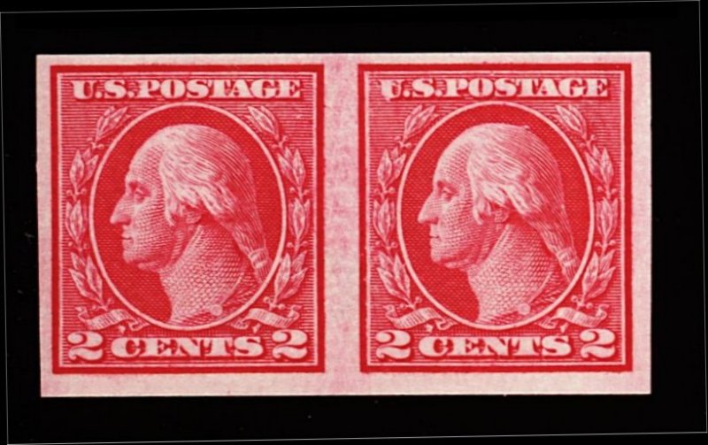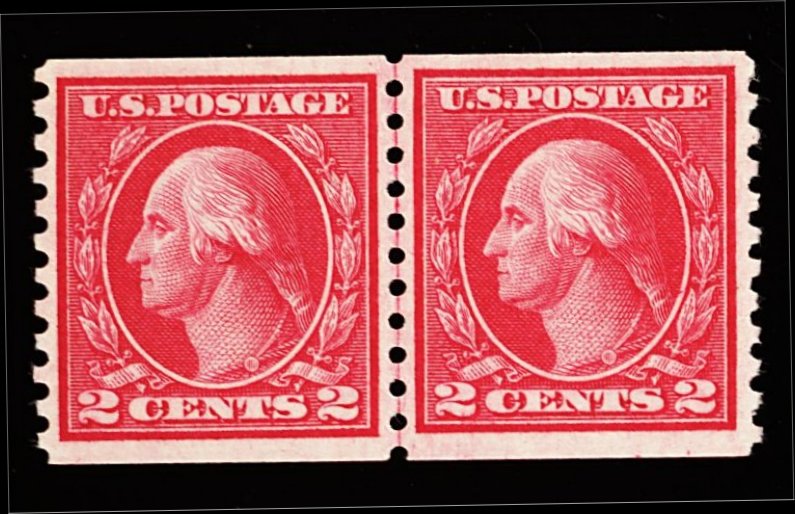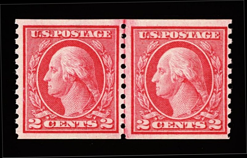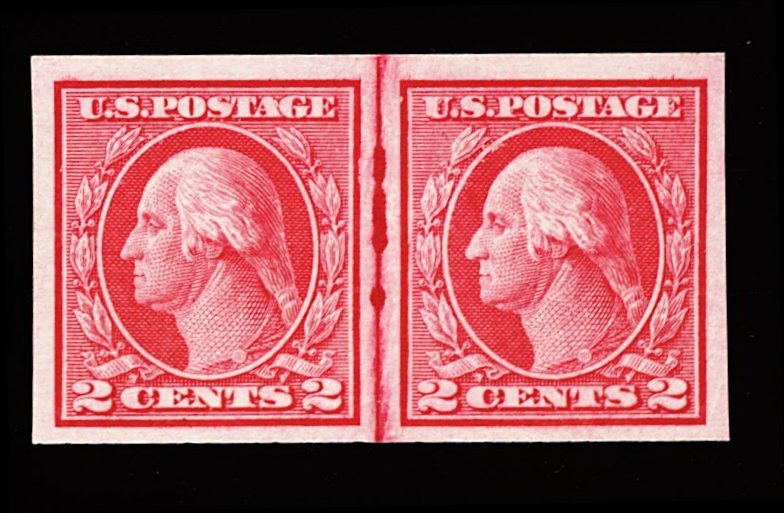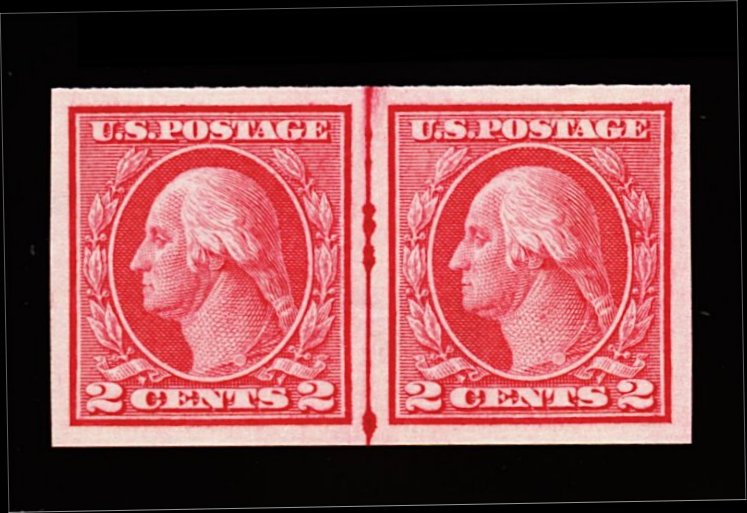 630 nh 459 image#459, 2c Carmine imperforate coil, pristine mint pair, radiant color, well margined, o.g., n.h., very fine; 2001 PF certificate. (Image) 775.00