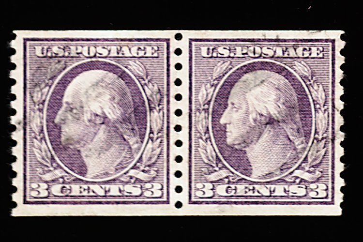 626 O 456 image#456, 3c Violet rotary coil, Ty. I, perf. 10 vert., pair, used, very lightly cancelled, exceptionally well centered and margined, strong fresh color and impression, extremely fine; a very scarce coil pair used in any quality, let alone in this premium condition; 2001 PF and PSE certificates. (Image) 350.00
