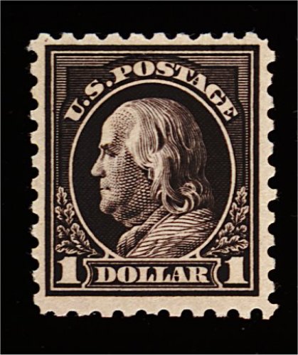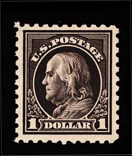 634 nh 460 image#460, $1.00 Violet black, a phenomenal quality mint example of this rare high value, being in a quality that is perfect for the collector who has been patiently waiting for a true gem example to make an appearance at auction, as every aspect of this stamp is sheer perfection, from its mathematically precise centering amid lavishly large margins, to its prooflike color and impression on immaculate paper, even its perforations are completely full and intact, unblemished o.g. without a single gum bend or skip, never hinged, superb; one of the very finest never hinged #460's in existence; 2001 PF certificate for a block of four, this being the bottom left stamp. (Image) 1,500.00