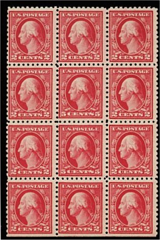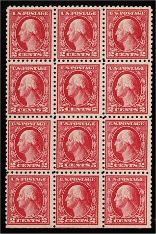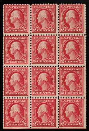 649 ogbl 467 image#467, 5c Carmine error, double error in the center of a block of twelve, deep color, o.g., l.h., fine. (Image) 1,800.00
