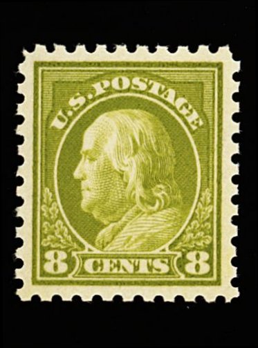 654 nh 470 image#470, 8c Olive green, an especially desirable mint example, being flawlessly centered within uncharacteristically large and well balanced margins, gorgeous fresh color, immaculate o.g., n.h., an extremely fine gem; 2001 PF certificate for a pair, this being the left stamp. (Image) 100.00