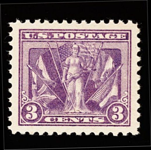 699 nh 537 image#537, 3c Victory, a "perfect" mint single of this relatively common stamp, in a most uncommon quality, being precisely centered within lavishly large margins, rich color, o.g., n.h., extremely fine; 2001 PF certificate. (Image) 16.00
