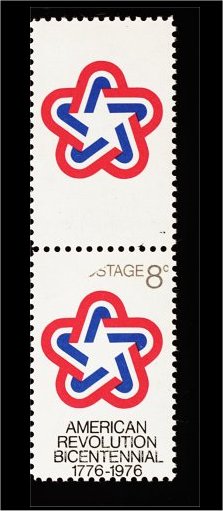 747 nh 1432b image#1432b, 8c American Revolution, gray omitted, the error stamp being the top stamp in a vertical pair (which shows just a trace of black printing as well), bottom stamp has a portion of the gray color omitted at top left, o.g., n.h., very fine; quite rare, especially in this striking pair; 1989 APS and 1990 PSE certificates; ex-Weisman. (Image) 1,150.00+