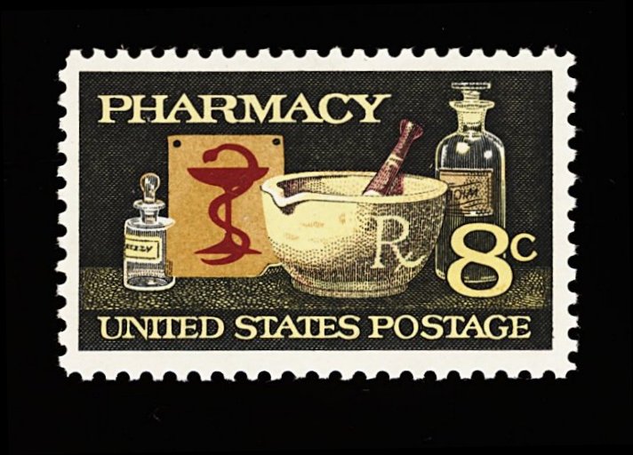 752 nh 1473b image#1473b, 8c Pharmacy, blue omitted, exceptionally well centered and margined, o.g., n.h., extremely fine; a very rare color missing error of which fewer than ten examples are thought to exist; 1994 PF certificate. (Image) 2,250.00