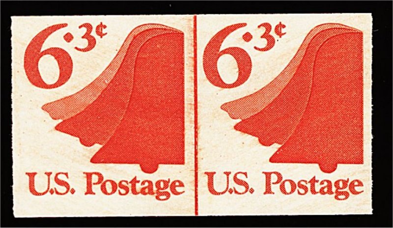 758 nh 1518b image#1518b, 6.3c Liberty Bell coil, imperforate, very scarce joint line pair, o.g., n.h., very fine and choice. (Image) 550.00