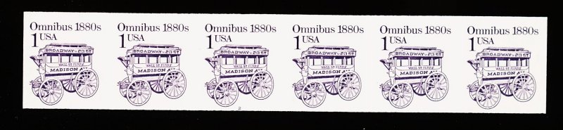 792 nh 2225b image#2225b, 1c Omnibus coil, imperforate, an extremely rare plate no. 2 strip of six, the only plate no. 2 strip known and one of only two plate number strips in existence of this elusive Transportation coil error (the other known plate strip is from plate no. 1), well margined, o.g., n.h., very fine; according to Datz only 22-24 pairs exist in total. (Image) as three pairs 6,750.00+