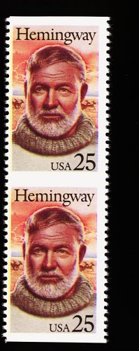 797 nh 2418a image#2418a, 25c Ernest Hemingway, vertical pair, imperforate horizontally, exceptionally choice example of this important perforation error which is listed but unpriced in both the Scott and Datz catalogs, well centered, o.g., n.h., very fine; only twelve error pairs exist, six of which are faulty; 2001 PF certificate. (Image) Est. 1,000-1,500