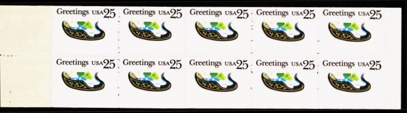 800 nhU 2429d image#2429d, 25c Christmas Greetings booklet pane of ten, red omitted, contained in a complete booklet (#BK168) with a normal pane, well centered, o.g., n.h., extremely fine; one of the rarest and most visually stunning of all the known missing color errors, with only a very few believed to exist; the catalog value quoted in Datz is for the last recorded sale of this error, which happens to be this very booklet, which was sold in June 1997 for $6,500.00, plus the 10% buyer's premium (Schiff sale #254, lot #3756); 1997 PF certificate. (Image) Datz 7,150.00