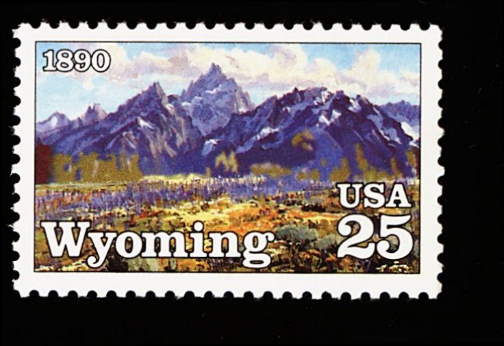 801 nh 2444a image#2444a, 25c Wyoming, black (engraved) omitted, well centered and margined example of this rare error, o.g., n.h., choice very fine; only 30 errors have ever been discovered, ten of which were affixed to cards before the error was noticed, leaving only twenty original gum examples; 1994 PF certificate. (Image) 2,500.00