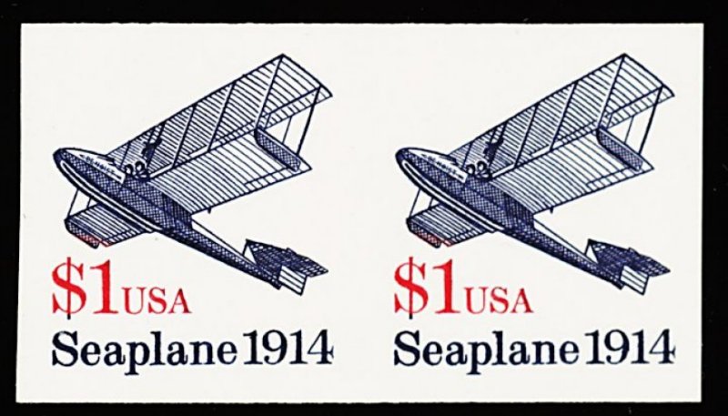 803 nh 2468a image#2468a, $1.00 Seaplane coil, imperforate, pair, well balanced margins, o.g., n.h., extremely fine; one of the key imperforate rarities of the entire Transportation coil series. (Image) 2,500.00
