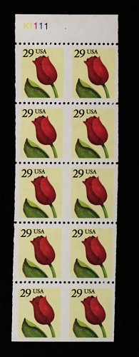 806 nhK 2527b image#2527b, 29c Flower booklet pane of ten, imperforate vertically, complete pane containing five error pairs, with plate no. K1111 in selvage tab, o.g., n.h., very fine; only ten to fifteen complete error panes are recorded. (Image) 1,500.00
