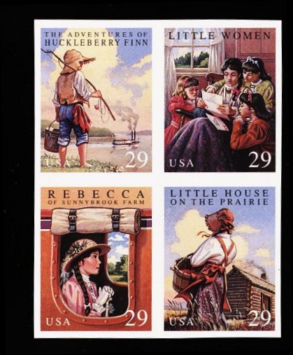 808 nhbl 2788b image#2788b, 29c Classic Books se-tenant block of four, imperforate, uniformly large margins all around, o.g., n.h., extremely fine; a very rare and exceedingly handsome imperforate error; only ten to twenty se-tenant imperforate blocks are thought to exist. (Image) 3,000.00