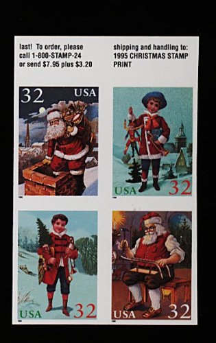 811 nhbl 3007d image#3007d, 32c Christmas se-tenant block of four, imperforate, top sheet-margin example with inscription in selvage, well margined, o.g., n.h., choice very fine. (Image) 700.00
