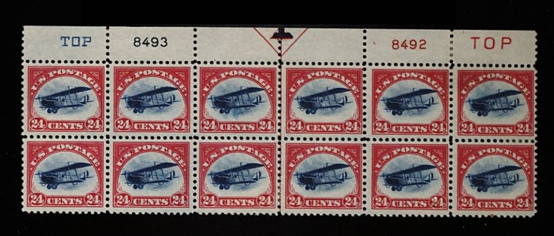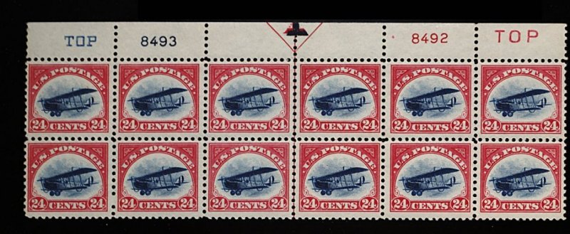 arrow, double "TOP" and plate nos. 8493, 8492 block of twelve, strong