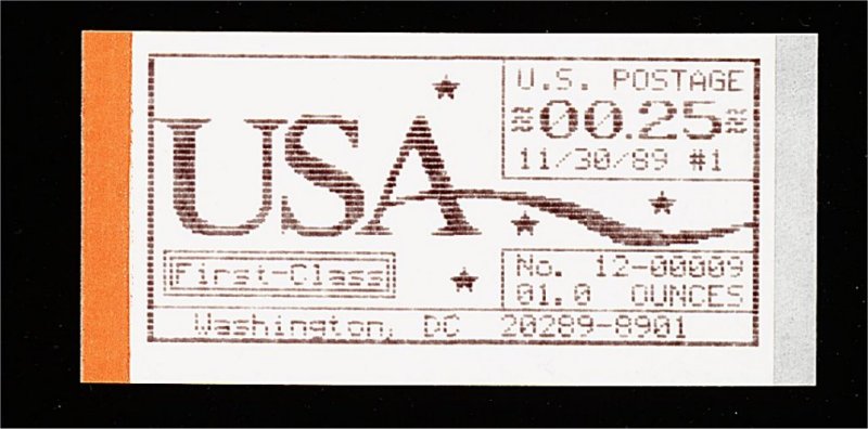 922 nh CVP26-30 image#CVP26-30, 1989 25c to $8.75 Washington, D.C., machine 12, computer vended postage cplt., the set of five different values, each still affixed to original label backing, brilliantly fresh, extremely fine; the rarest of all the computer vended postage issues which are now listed in Scott, however the Scott catalog does not yet price this rare set; each value accompanied by a 1999 PF certificate. (Image) Est. 2,000-3,000