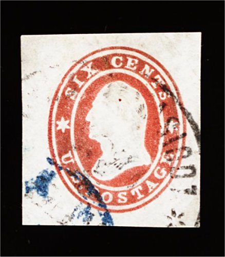 924 O U30 image#U30, 6c Red on white, used cut square, measuring 26x27mm, with both black and blue circular postmarks, very fine for this rarely seen item; 2000 PSE certificate. (Image) 1,250.00