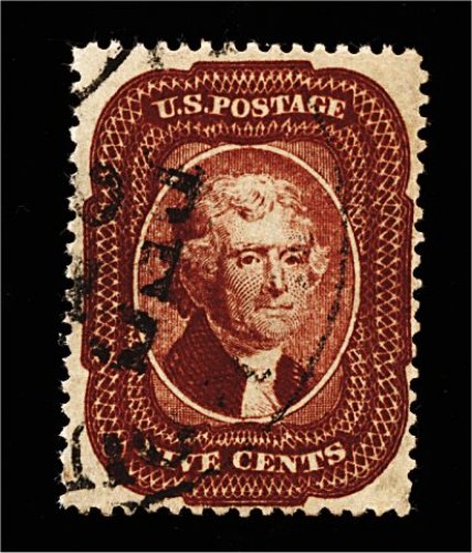 85 O 28A image#28A, 5c Indian red, Ty. I, a beautiful used example of this rare and often misidentified stamp, being one of the few existing copies whose perforations clear the design all around, as the vast majority of the known examples are found typically quite off center, plus this stamp is completely free of the flaws which affect a large number, deep luxuriant color and a strong detailed impression on bright paper, light and unobtrusive strike of a town c.d.s., even its perforations are fully intact all around (a rare trait on any perf. 15 issue), extremely fine; an important condition rarity; 1999 PF certificate. (Image) 3,000.00