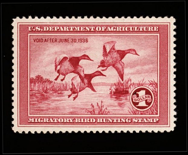 1003 nh #RW1 image#RW1, 1934 $1.00 Blue, a magnificent quality mint example, being in the finest condition possible, possessing incredibly large and perfectly balanced margins all around, strong prooflike color and impression on immaculate paper, clean o.g. devoid of the usual natural gum bends, n.h., extremely fine; a highly desired stamp in this gem condition; 2000 PSE certificate. (Image) 750.00