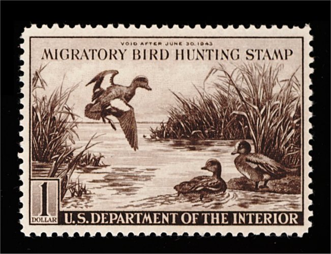 1008 nh RW9 image#RW9, 1942 $1.00 Violet brown, precisely centered within uncommonly large margins, lovely fresh color, o.g., n.h., extremely fine; 2001 PF certificate. (Image) 200.00