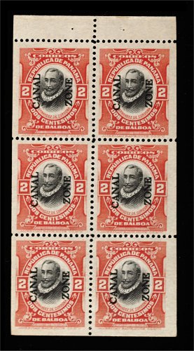 1015 ogK 39c image#39c, 2c Vermilion and black, booklet pane of six, imperforate margins, a gem example of this very scarce booklet pane, marvelously well centered and margined throughout, brilliantly fresh and intact, o.g., very lightly hinged, extremely fine; 2001 PF certificate (CZSG #39c). (Image) 500.00