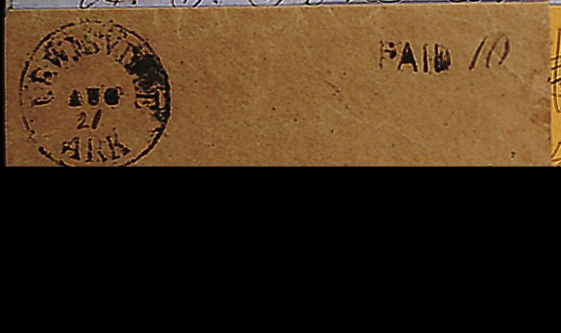 unframed and circular "Paid" and circular "10" handstamps, on yellow cover