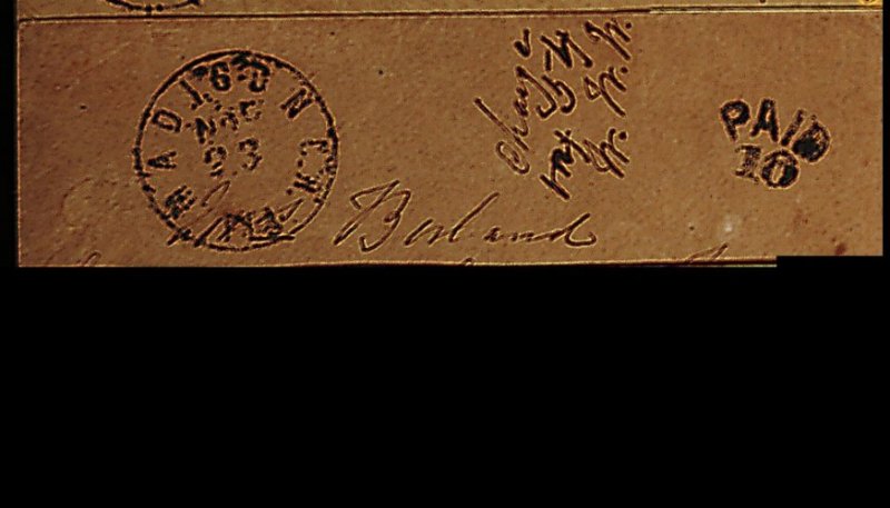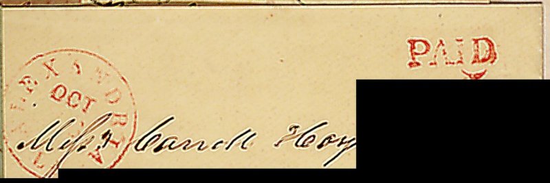 matching unframed "Paid" handstamp on folded letter addressed to the