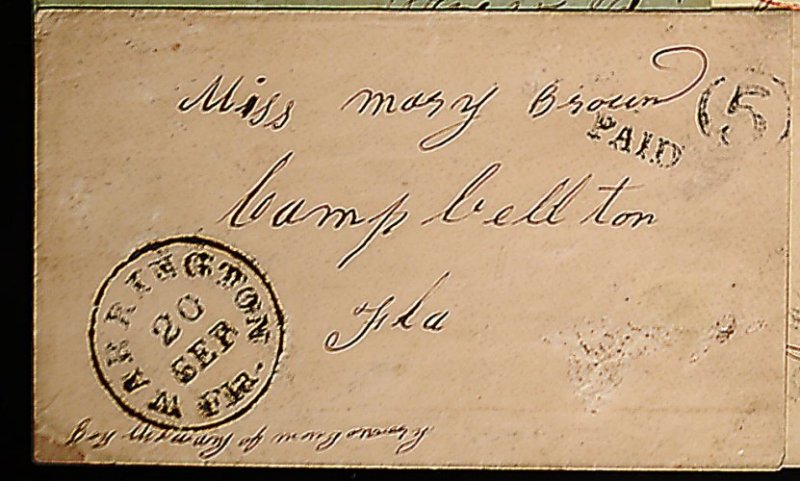 "Paid" and circular "5" handstamp on cover to Campbellton, Fla., endorsed