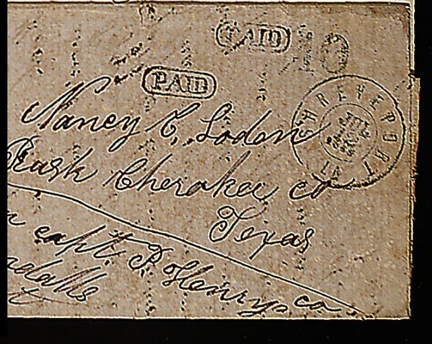 folded letter to Rusk, Cherokee Co., Texas, endorsed "A.S. Loden, Capt. P.