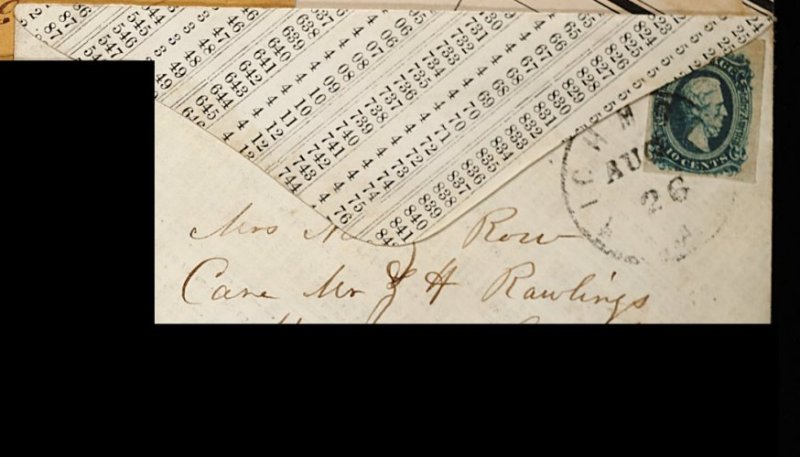 1282 c 11b image#11b, 10c Dark blue, Die A, impressive single with large to enormous margins, strong color and clear impression, tied by "Richmond Va./Aug 26" c.d.s. to pristine adversity cover made from a printed shipping rate conversion chart, addressed to Hadensville, Goochland County, Virginia, flap at back turned for display, superb; an adversity cover of first-class quality. (Image) Est. 150-200