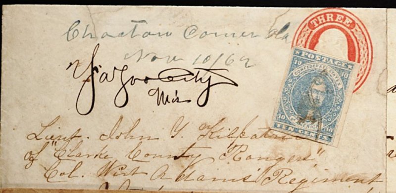 Miss., forwarded (without due marking) to Yazoo City, Miss, stamp lifted to