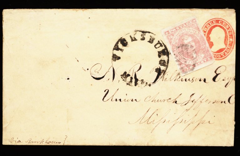 Star die entire, circular "Vicksburgh Miss." town postmark to left,
