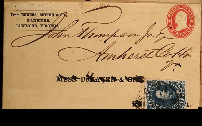 Va./Mar 22 1862" c.d.s. to invalid 3c Red Nesbitt entire, addressed