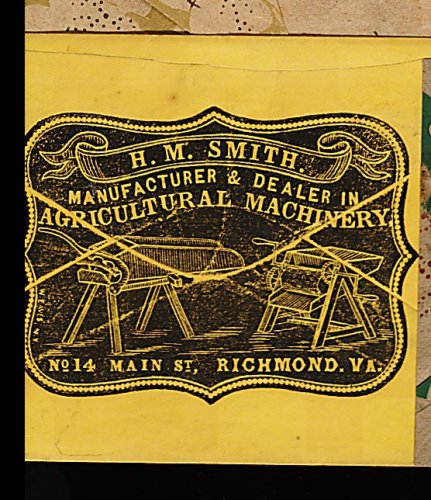 1351 c 1 image#1, 5c Green, Stone 1 or 2, just touching to large margins, warm rich color, tied by "Richmond Va./Jan 9 (1862)" c.d.s. to rich yellow cover with printed Agricultural Machinery corner card on reverse, addressed to Diana Mills, Buckingham (County, Virginia), unobtrusive neatly sealed tear to flap at back far from design, extremely fine, a bright fresh cover with wonderful eye-appeal. (Image) Est. 300-400