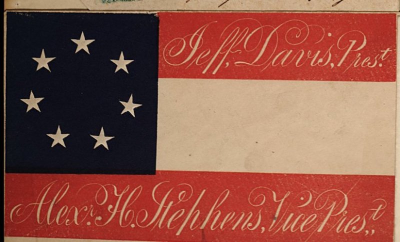 1392 c imageDavis-Stephens 7-Star Confederate Flag Patriotic design covers, five unused examples, most with a different arrangement of embossed stars in the blue field, covers also show different fonts with one misspelling Stephens (Stevens), another is docketed in manuscript with political commentary "Flag of the South; or, the Traitors Ultimatum. Sic transit! Gloria Viri!!!", on reverse is written "Presented by R.W. Lansing, May 10th 1861, Inperpetuam Memoriam", four of the covers probably of Union manufacture, one docketed to be of Southern origin, light back erosion and trivial folds to a couple, otherwise extremely fine; a very select grouping for the Confederate patriotic collector. (Image) Est. 300-400