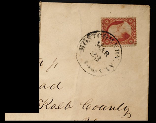 1441 c 26 imageMontgomery Ala / Mar 23 / Paid c.d.s. ties a 3c Dull red (#26) to large "Official Business" cover, addressed to Lieut. W.O. Winston Jr., Valley Head, DeKalb County, Alabama, original 22 March 1861 Special Order enclosure accompanies signed by G.W. Goldthwaite, Adjt. Inspector General, fresh and extremely fine; large business covers from this period are very difficult to find in this premium condition. (Image) Est. 300-400