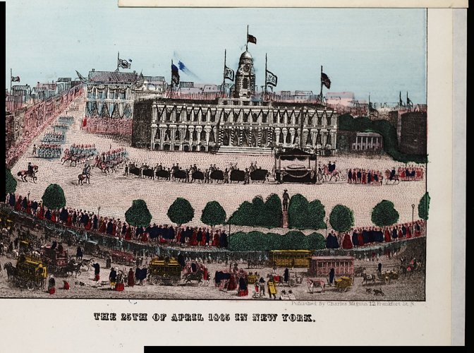 1539 imageLincoln Funeral Procession Mourning Lettersheet published by Charles Magnus, pristine unused 396x250mm folded to 198x250mm size, glorious hand colored imprint of Lincoln's April 25, 1865 funeral procession in New York City, extremely fine and rare; a stunningly attractive collateral item for the Lincoln or Civil War collector or exhibitor. (Image) Est. 150-200