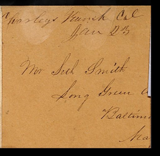 1545 c imageCharley's Ranch, Cal./Jan 23" manuscript postmark on buff colored cover (circa 1850's) to Baltimore, Maryland, ms. "10" rate at top right, cover quite clean, although some professional restoration of top back flap and at top (including a sealed tear into marking), very fine appearance; one of the rarest town markings not only from Butte County, but of the entire state of California. (Image) Est. 300-400