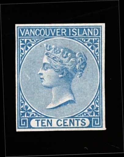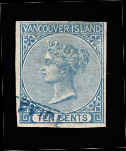 1591 O 4 image#4, 1865 10c Blue, ample to large margins, lightly cancelled in blue at lower left leaving Queen's bust clear, red guarantee mark just shows through to front, very fine; 1968 BPA certificate (S.G. #12; £800). (Image) 800.00