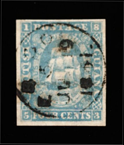 1610 O 12 image#12, 1860 4c Blue, imperforate, nice rich shade, full margins all around, centrally cancelled by a 1861 "B G/E 5 C" c.d.s., very fine (S.G. #21; £450). (Image) 450.00