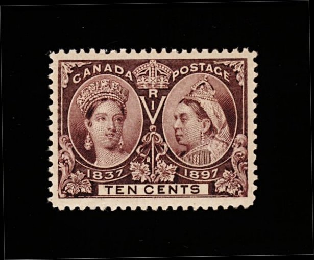 1662 nh 57 image#57, 1897 10c Jubilee, a fabulous mint example in a condition that would be next to impossible to duplicate, featuring absolutely gigantic margins all around and being virtually perfectly centered within them, lovely rich color and a razor-sharp impression contribute further to this stamp's remarkable overall eye-appeal, pristine o.g., n.h., an extremely fine gem for the finest collection; 2000 PF certificate for a block of four, this being the bottom left stamp (Unitrade C$420.00). (Image) 210.00
