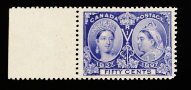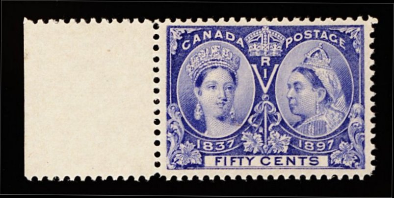 1667 nh 60 image#60, 1897 50c Jubilee, left sheet-margin single, beautiful rich color, well centered, pristine o.g., n.h., very fine; 2000 PF certificate (Unitrade C$975.00). (Image) 550.00