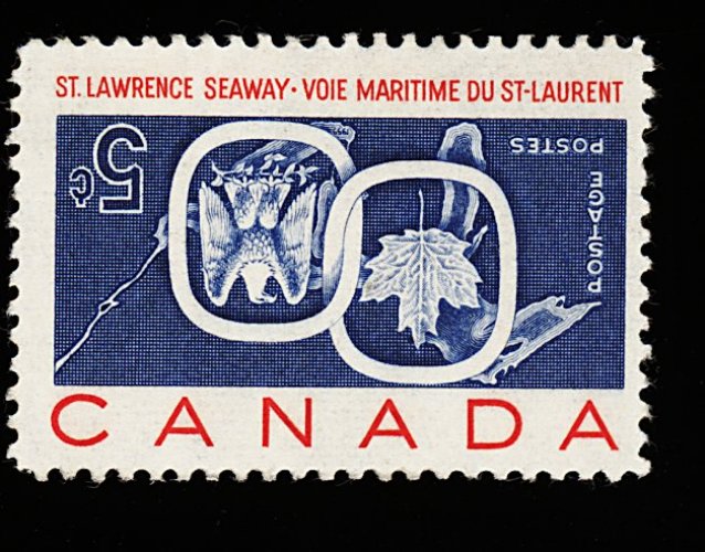 1672 og 387a image#387a, 1959 5c St. Lawrence Seaway, Center Inverted, an exceptionally well centered mint example of this popular invert rarity, strong fresh colors, o.g. which is a bit disturbed as found on many of these errors, very fine and handsome (S.G. #513a; £9,000). (Image) 8,250.00