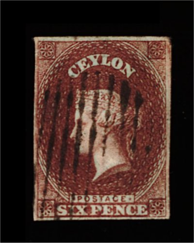 1679 O 2 image#2, 1857 6p Plum on blued paper, dazzling color on paper which has retained its full blueing, prooflike impression, large even margins, neat barred cancel, very fine (S.G. #1; £450). (Image) 450.00