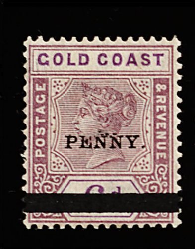 1716 og 37a image#37a, 1901 "ONE PENNY" surcharge on 6p Lilac and purple, "ONE" omitted error, well centered, o.g., certificate states "vertical creasing" which is nothing more than a faint natural gum wrinkle and completely unworthy of mention, very fine; 2000 BPA certificate (S.G. #36a; £250). (Image) 275.00