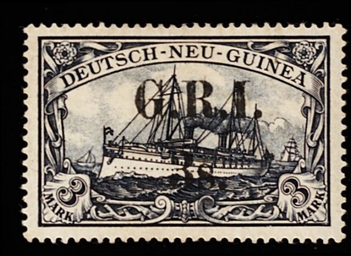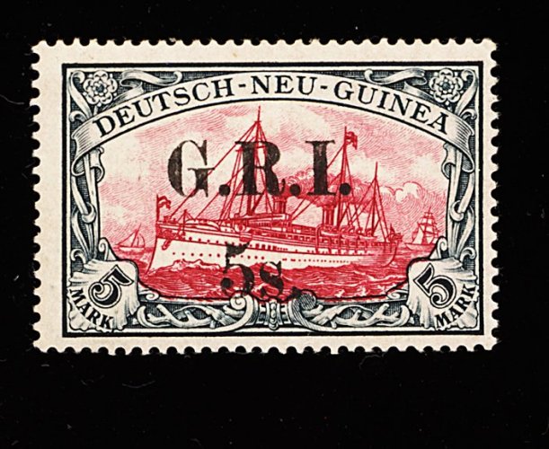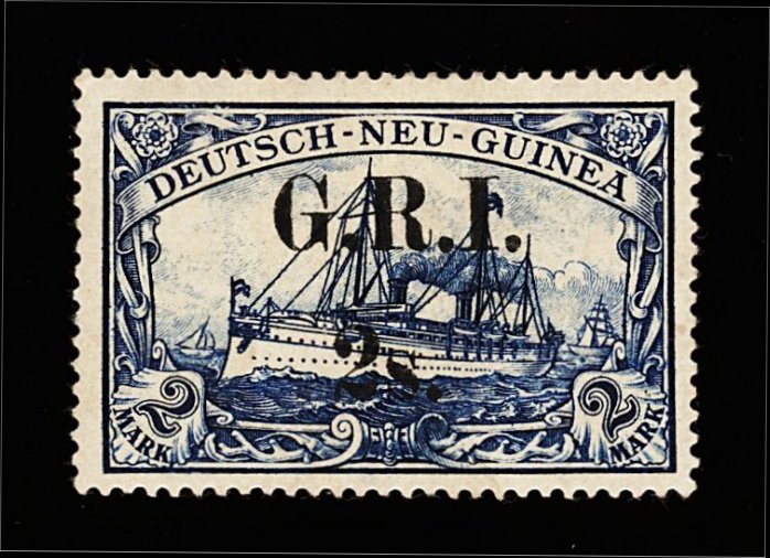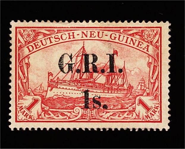 1800 O 45 image#45, 1915 "1" on 2p on 20pf Ultramarine, bright color, well centered, neatly cancelled by part oval violet Rabaul d.s., very fine; only 50 stamps surcharged with the large figure "1" on this value; 1983 BPA certificate (S.G. #64; £2,250). (Image) 1,900.00
