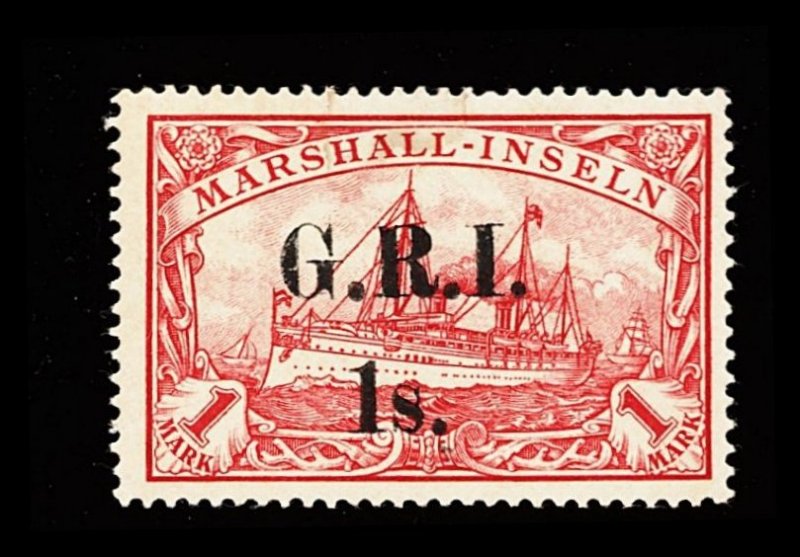 1789 og 12 image#12, 1914 1/- on 1M Carmine, well centered, o.g., tiny translucent spot and hardly noticeable ink marks along perf. holes at bottom, otherwise very fine; only 63 stamps surcharged; clear 1968 RPS certificate (S.G. #12; £1,500). (Image) 1,250.00