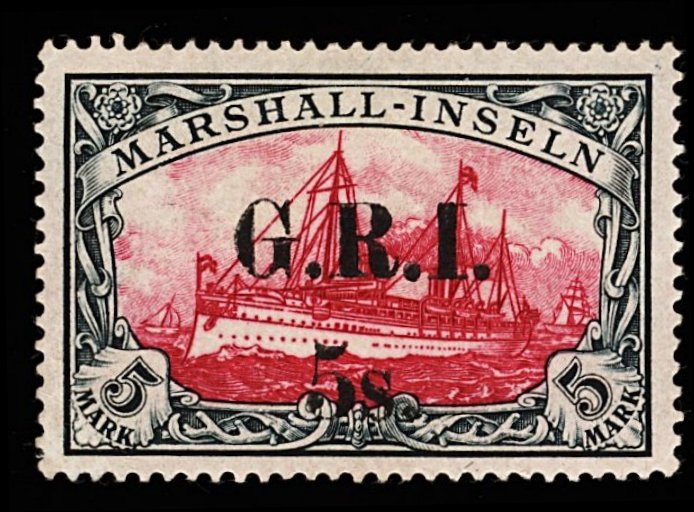 1798 og 42 image#42, 1914 5/- on 5M Carmine and black, wonderfully fresh, strikingly rich colors, exceptionally well centered for this difficult stamp, o.g., an extremely fine example of this major "G.R.I." rarity; of the 30 surcharged, this certainly ranks as one of the finest extant; signed H. Bloch and accompanied by a 1979 BPA certificate (S.G. #62; £6,500). (Image) 8,000.00