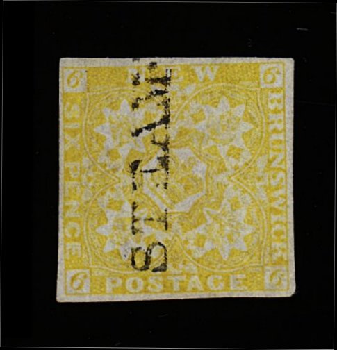 1802 O 2 image#2, 1851 6p Olive yellow, bright rich color, large well balanced margins, cancelled by straight-line "STEAM.(BOAT)" h.s. (Jarett type 428), faintest trace of a bend which is of no consequence, very fine; clear 1966 BPA certificate (Unitrade C$1,200.00). (Image) 725.00+