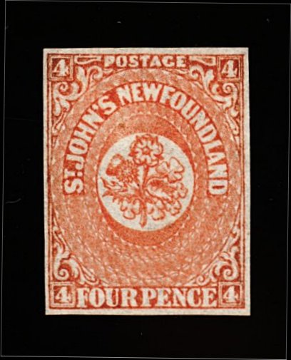 1804 ng 12 image#12, 4p Orange, unused, four full balanced margins, fresh bright color, accompanying certificate states "small surface mark and small internal repair", the surface mark is just a tiny age spot and the repair is virtually invisible, still a very fine and attractive example; 2000 Brandon certificate (S.G. #12; £2,250). (Image) 2,300.00